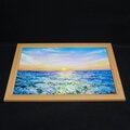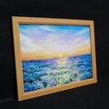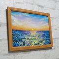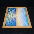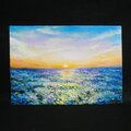 「夕日に輝くネモフィラ」は、色鮮やかなオレンジ色と黄色、薄い紫色、そして青色が織り成す夕日空と、下に広がるネモフィラ畑を描いた美しい油彩作品です。この絵は、夕日が中心に輝くことで生まれる温かい光と、花畑の色とりどりの美しさが調和し、観る人に心の安らぎと特別なひとときをもたらします。自然の美しさが、あなたの生活空間に素敵な癒やしを加えてくれることでしょう。