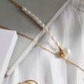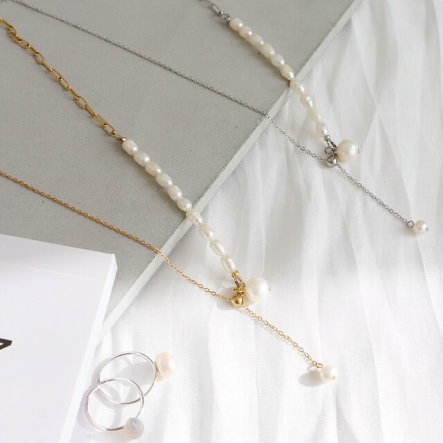 ひとつひとつ形の異なる淡水パールが、ラフでこなれた雰囲気をつくります。