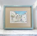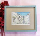 額のサイズは縦横22×27センチ、葉書サイズ(10×15センチ)の小さな絵ですので、壁や棚など、どこにでも飾ってお楽しみいただけます。