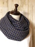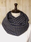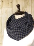 メチャ軽❣️ピュアウールガーゼ二重巻きスヌード❤️ギンガムチェック(ネイビー×ダークブラウン)