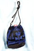 生地は花模様織り出し名古屋帯を使っています。 縦23センチ、横22センチ、マチ6センチの小さ目な巾着バッグです。 ショルダーベルトは120センチのパラロープがついています。
