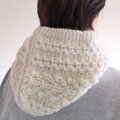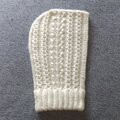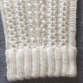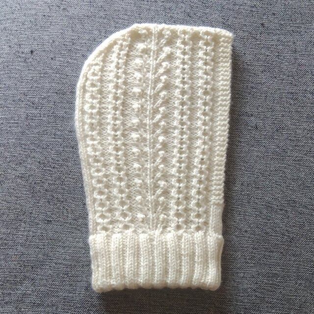 生成りの毛糸で編む地模様のニットは、立体感と陰影が冬の雪景色のように美しく、とても好きなデザインです。決して派手ではないのに、とても存在感があります。