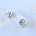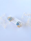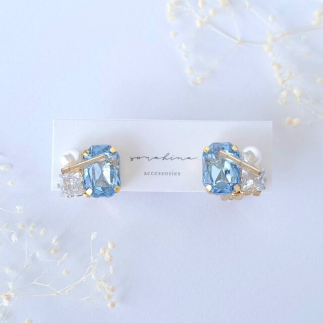 水色のビジューとジルコニア、パールを組み合わせ、着けるだけで大人っぽく華やかになります。