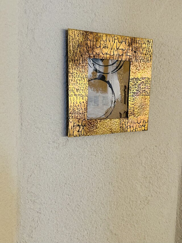 表画は、アルファベットの刻印を打ちつけて紋様をデザインしています。