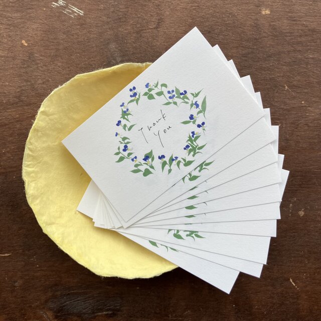 露草の環と「Thank you」の手書きの文字が印刷されたカードです。