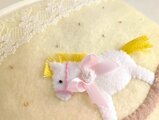 淡いイエローのフリース生地にレースを合わせ、