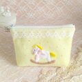 #化粧ポーチ #コスメポーチ #木馬 #マチ付き #かわいい #ウマ #ビーズ刺繡 #レース #リボン #ギフト