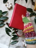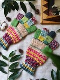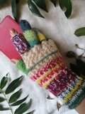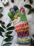 春の花をまとめた花束のような、手編みのスマホ操作対応5本指手袋です。