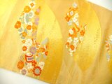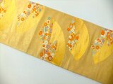 金糸地に扇小花文様です。品のいい金色で高級感のある帯地です。