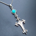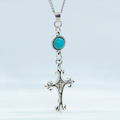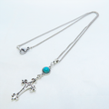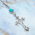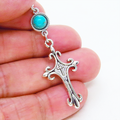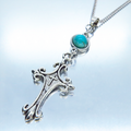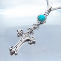 アンティークシルバー ゴシック調のロザリオ(十字架)とターコイズのネックレス ステンレス可