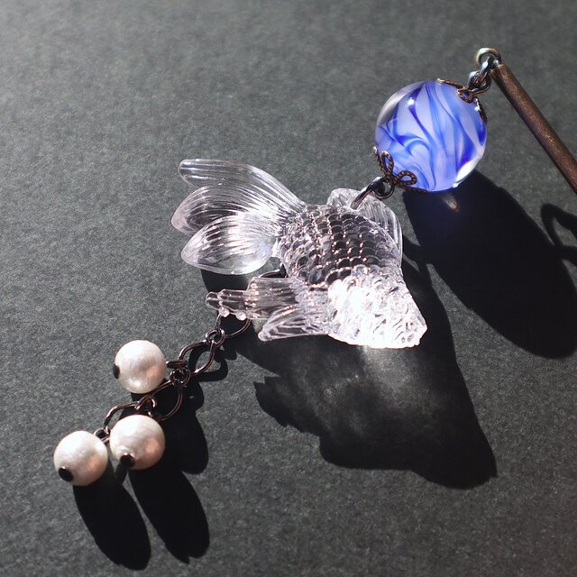 金魚チャームは、透明感のある高品質アクリル製。氷細工のように光を返します。