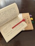 本の間からそっとのぞく梅結びが、読書の時間を少し特別なものにしてくれます。