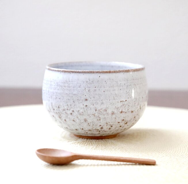 とてもシンプルなお湯のみですが、その分ころんと丸い可愛らしいフォルムと土と釉薬が織りなす質感をお楽しみ頂ける器です。