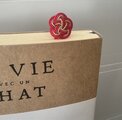 本の間からそっとのぞく梅結びが、読書の時間を少し特別なものにしてくれます。