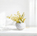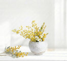 明るいミモザと白い小花を合わせ、
