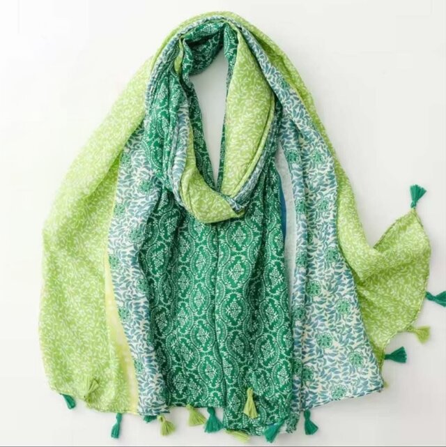 コットン ストール 大判 スカーフ タッセル付き 花柄 春 綿麻 レディス 大人カジュアル ショール マフラー ギフト 通勤通学