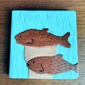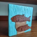 埴輪の魚をモチーフにした木彫レリーフです。ウォールデコやコースターとして、ちょっとした空間の和みアクセントに。