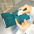 財布を開くとカード収納部がせり出し、カードをスムーズにとり出すことが可能。複数枚の一番前と一番後ろは瞬時に出し入れできます。