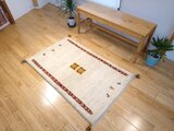 商品名: ペルシャ ギャッベ アイボリー 真ん中にパネル RJ16021