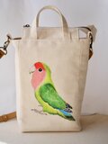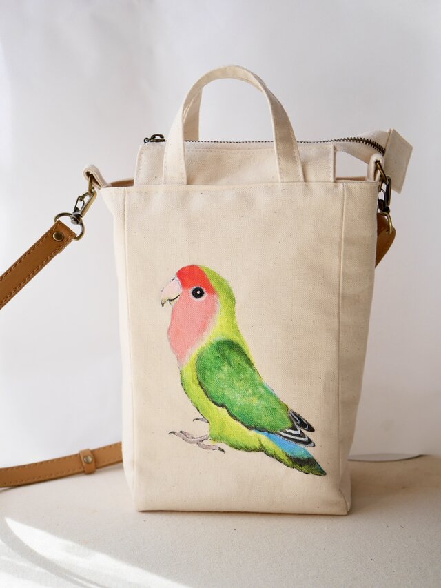 コザクラインコを手描きした スクエアショルダーバッグです。