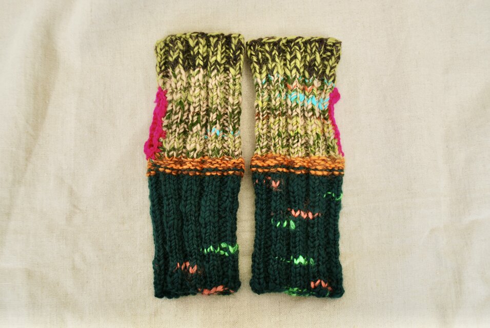 毛糸は全て、染めた羊毛から色を組み合わせて私が糸車で紡いでいます。