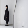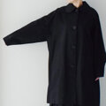 サイズ感はゆったりめですが、サイドに脇マチを入れて立体的にし、後ろ身頃のタックは思い切って大きくすることで、胸の部分のゆとりを確保しつつ、前身頃の生地分量を前中心から裾に向かって外向きに斜めに削ることで、生地の流れを調整し、前身頃の裾に余分にフレアが出にくく、ゆとりはありながらも前面はスッキリと見えるようにデザインしています。