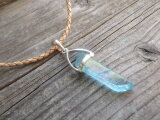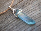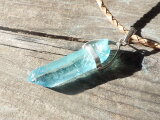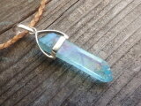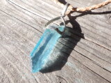 sv925 Aqua aura quartz necklace アクアオーラ原石ポイントの革紐ネックレス