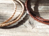 ネックレス部分には、しっかりと編み込まれた革紐を使用し、ナチュラルと焦茶の2色からお選びいただけます。