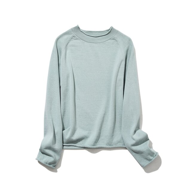 ★サンプルセール 1点のみ★超人気 シンプルなのにお洒落、私の定番ニット 淡い青緑色 230214-3