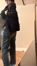 黒いモフモフな葉っぱのトートバッグ❤︎今届きました。ポーチやお土産もありがとうございます。 確かに年間通して使えそう。大事にします。