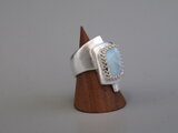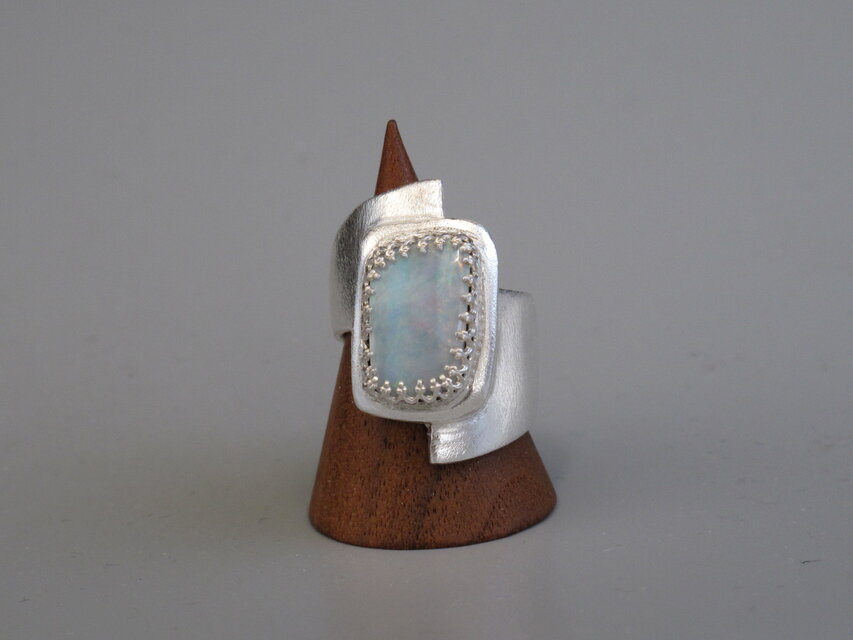 一目惚れで親指用に注文しました。 純銀ならではの清楚で柔らかい白い輝きが大変美しい指輪です。 リング自体は幅のあるカフタイプですが、ペンダントモチーフがフェミニンで可愛らしさがあり、 純銀の白い輝きともとてもマッチしていて、すごく素敵です! 思った通り、サムリングにぴったりでした^^ 大切に愛用させていただきますね。ありがとうございました。