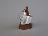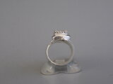 リングのサイズは13号、重さは17g、最大幅は30mm、手のひら側の幅は8mm、金属部分は純銀です。