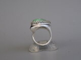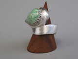 リングのサイズは13号、重さは18g、最大幅は23mm、手のひら側の幅は9mm、金属部分は純銀です。