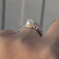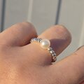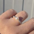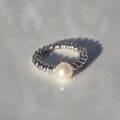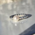 7㎜の淡水パールを、1粒、リズミカルなリングに