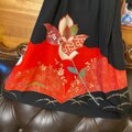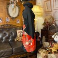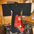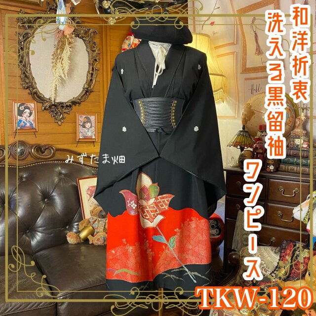 【 黒留袖 着物 リメイク ワンピース ドレス 和洋折衷 洗える 化繊 ハンドメイド レトロ 古着 真紅のバラと幾何学の調べ TKW-120】