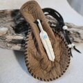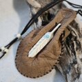 こちらは【鹿革の巾着ペンダント ラリマーの鹿角フェザー】になります。
