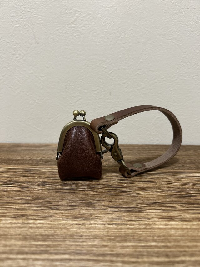 姫路レザーminiminiコインケース◆焦げ茶 革財布 キーホルダー 小物入れ バックチャーム がま口