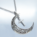 月の曲線からしなやかに揺れるのは、端正な造形のロザリオ(十字架)