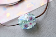 薄い水色の地に、雪割草を咲かせました。