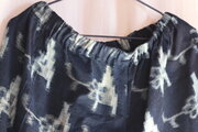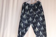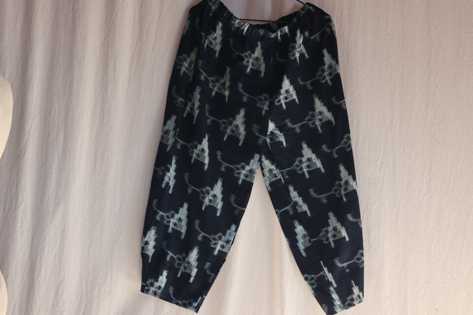 木綿の藍絣の着物から作ったゆったりはけるもんぺ風パンツ