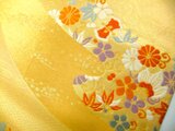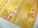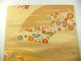 金糸地に扇小花文様です。品のいい金色で高級感のある帯地です。