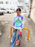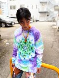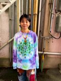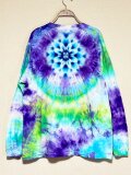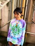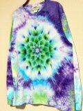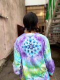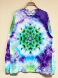 タイダイ 長袖 Tシャツ Lサイズ 曼荼羅模様 パープル×グリーン×ホワイト HD25-32