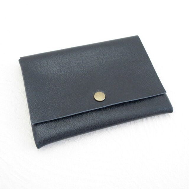 【アウトレットライン】ゴートスキン・B7対応パスポートケース・ネイビー・ソフトシュリンク・カードポケット付き・0164