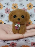 茶色の羊毛フェルトで作られた可愛い犬の置物。
