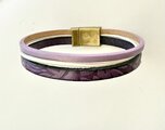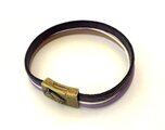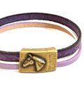 【稀少 ヨーロッパ製 本革 バイオレット 紫(エンボス)・パールホワイト・ラベンダー ブレスレット】マグネット留め