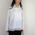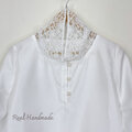 ワッシャーホワイト生地と美しいラッセルレース生地を合わせて
