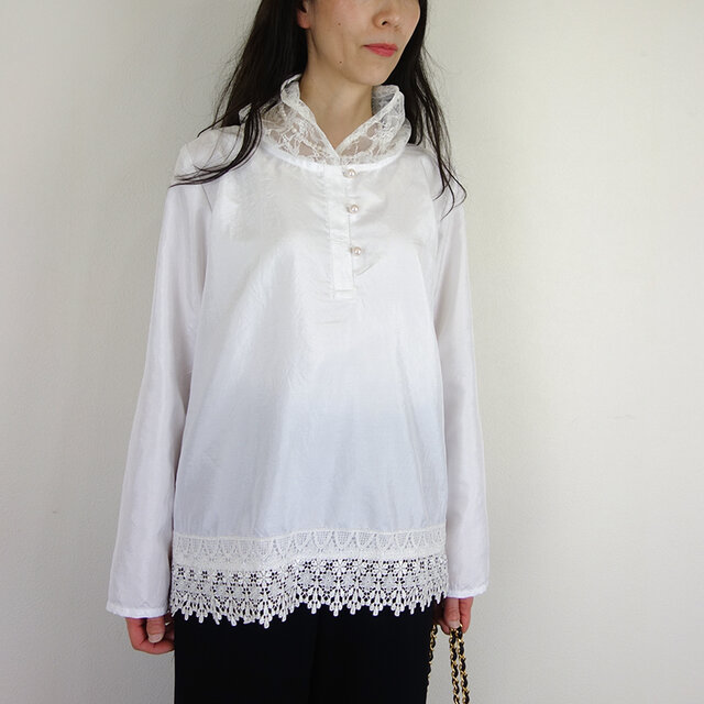 裾に美しいケミカルレースを飾りました。
