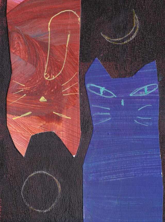 月夜の晩に猫たちが集まって楽しく話をしているイメージです。