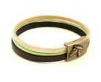 【ヨーロッパ製 本革 チョコレートブラウン(濃茶)・ピスタチオ・シャンパンゴールド ブレスレット】マグネット留め