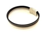 留め具は強力ですが、上側の境目の細い溝に爪をたてるようにすると 簡単に外れます。左右に無理やり引き抜こうとすると外れますので、初めてお使いになる場合は、腕にはめるまえに 何度かお試しくださいませ。